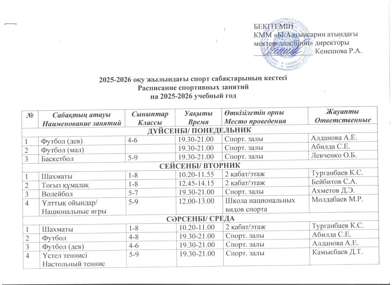 2025-2026 жылдарға арналған сабақ кестесі