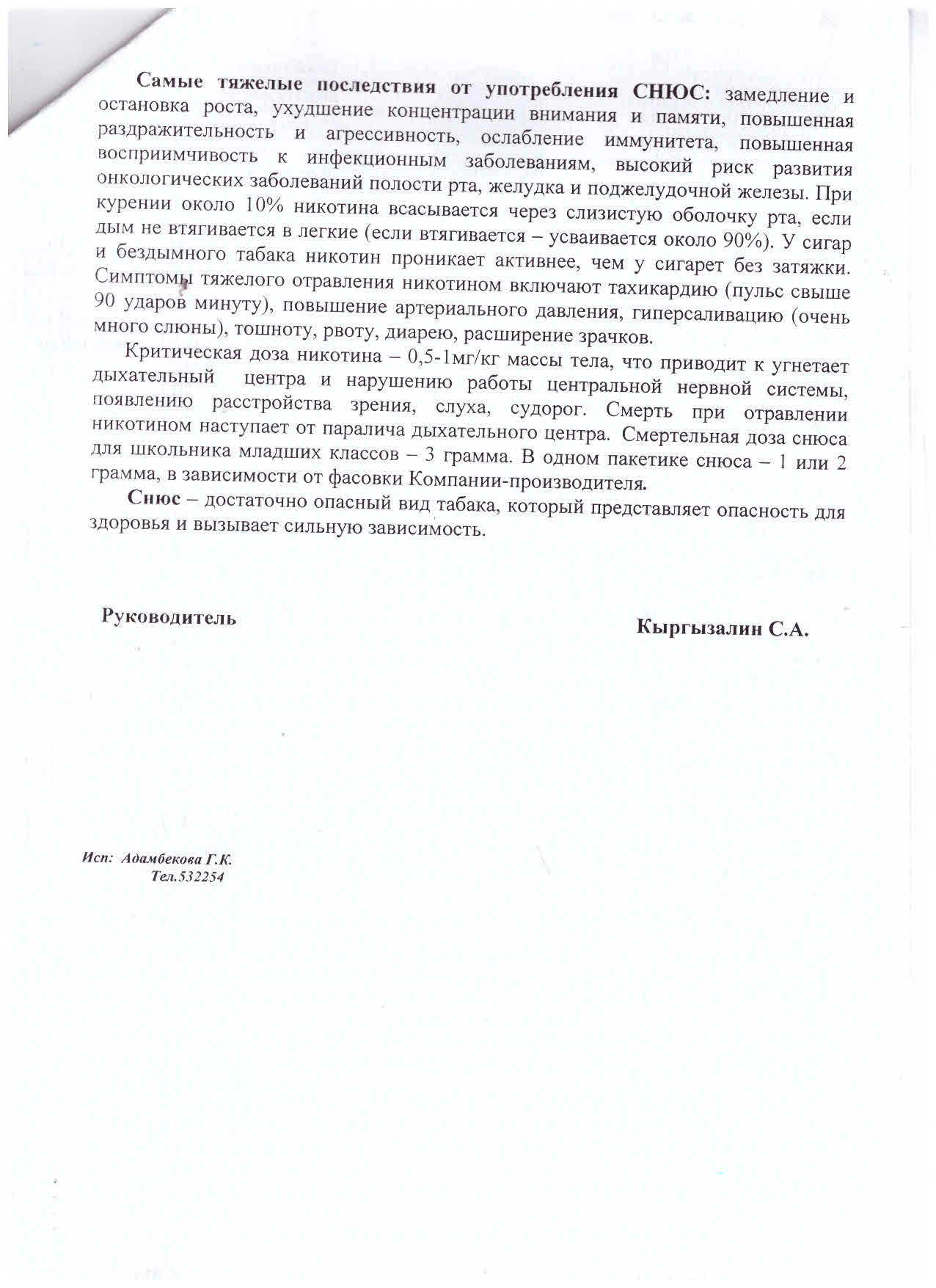 Согласно Заключению Министерства юстиции РК от 16 февраля 2016 года нормативный правовой акт не нарушает установленные законодательством права, свободы и интересы граждан и не противоречит действующему законодательству Республики Казахстан.