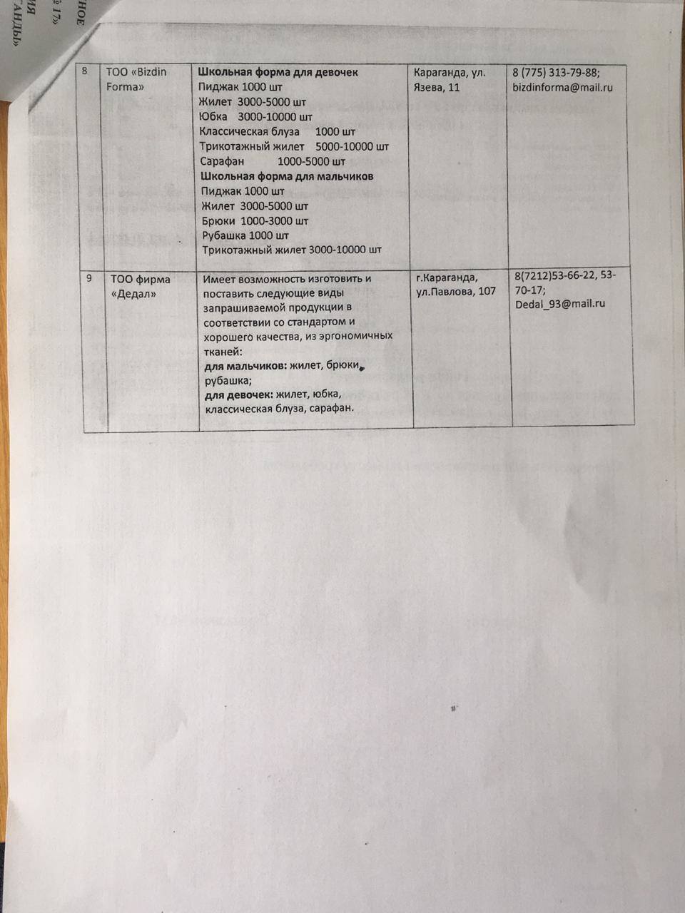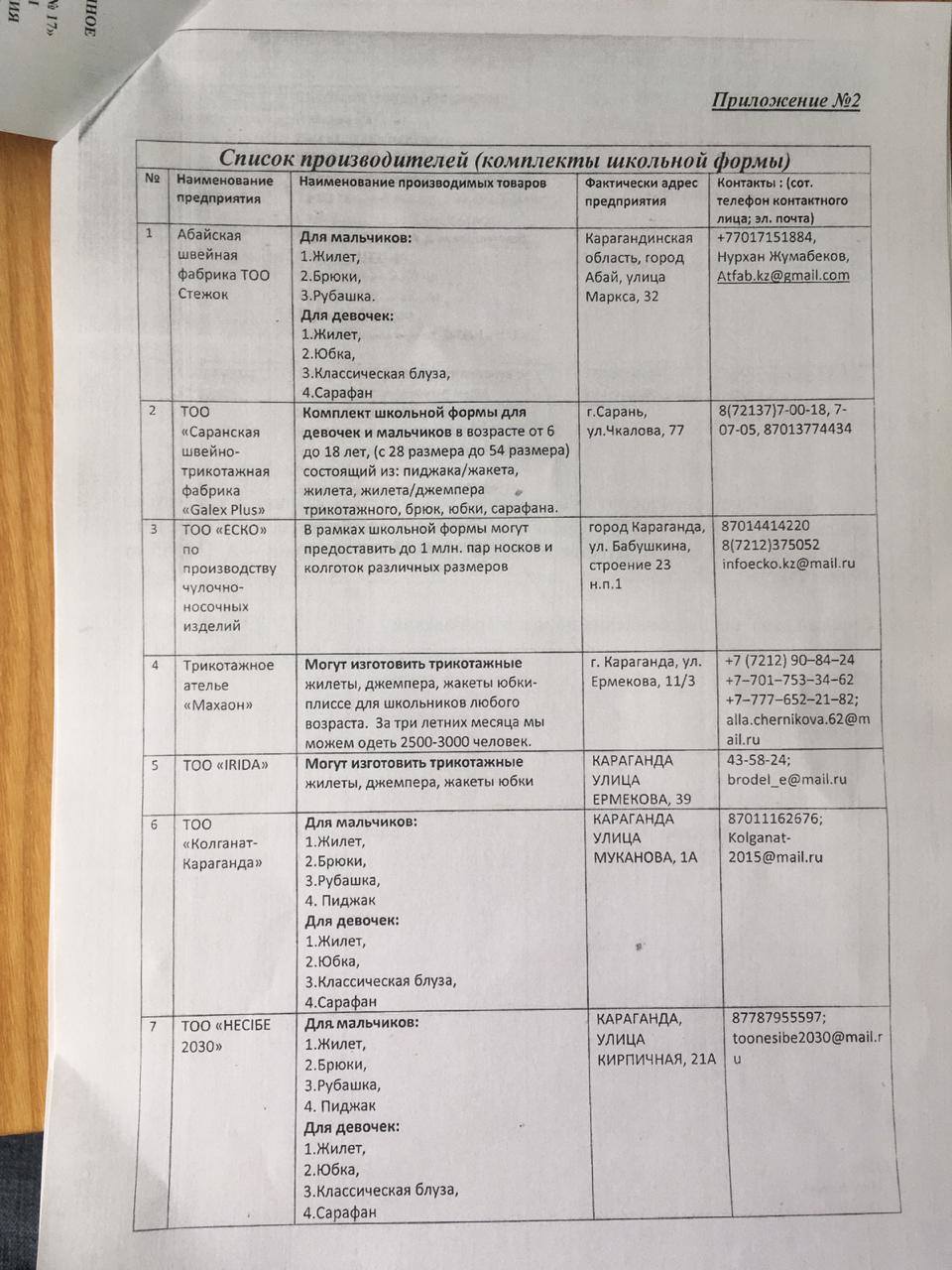 Требования к обязательной школьной форме, утверждены приказом Министра образования и науки РК№ 26 от 14 января 2016года. Приказ зарегистрирован в Министерстве юстиции РК.