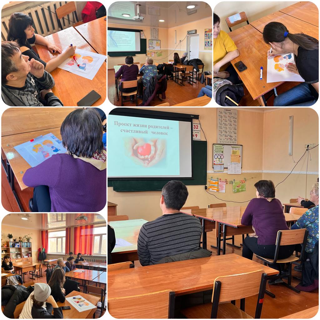 08.11.2023 33 МБК КММ “Ата-аналар академиясы» педагогикалық қолдау бағдарламасы аясында 1 сынып ата-аналарымен «Ата-аналардың өмір жобасы-бақытты адам» тренингі өткізілді.