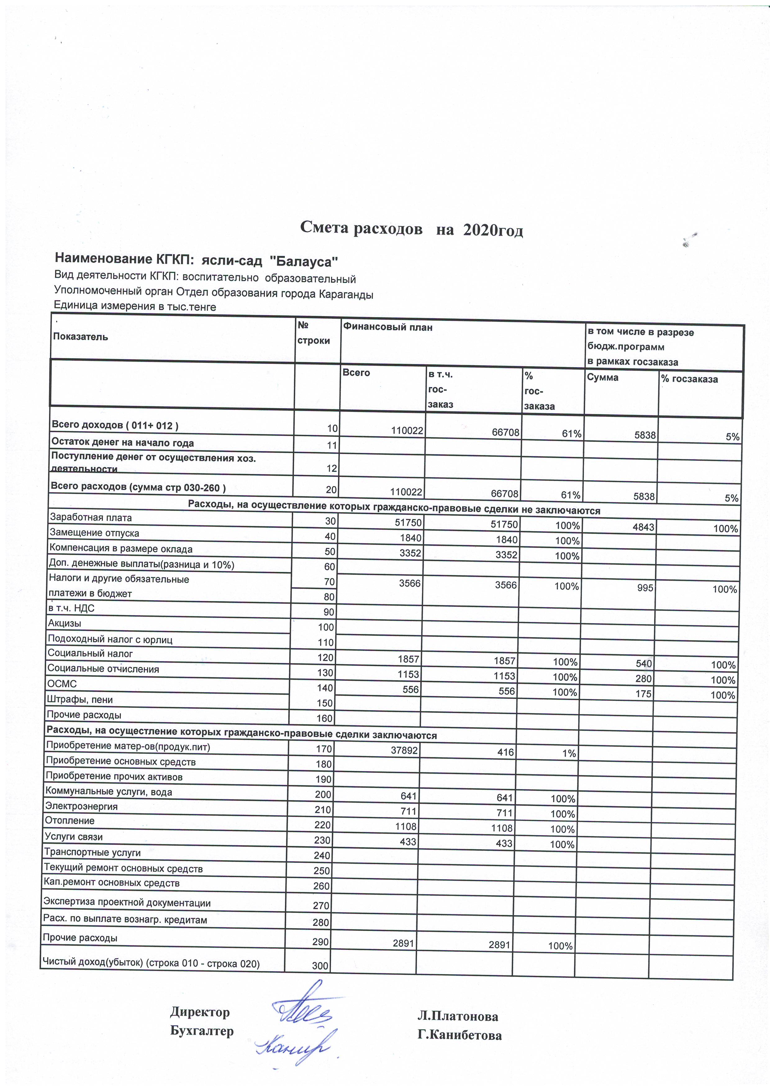 План финансирования 2020 год