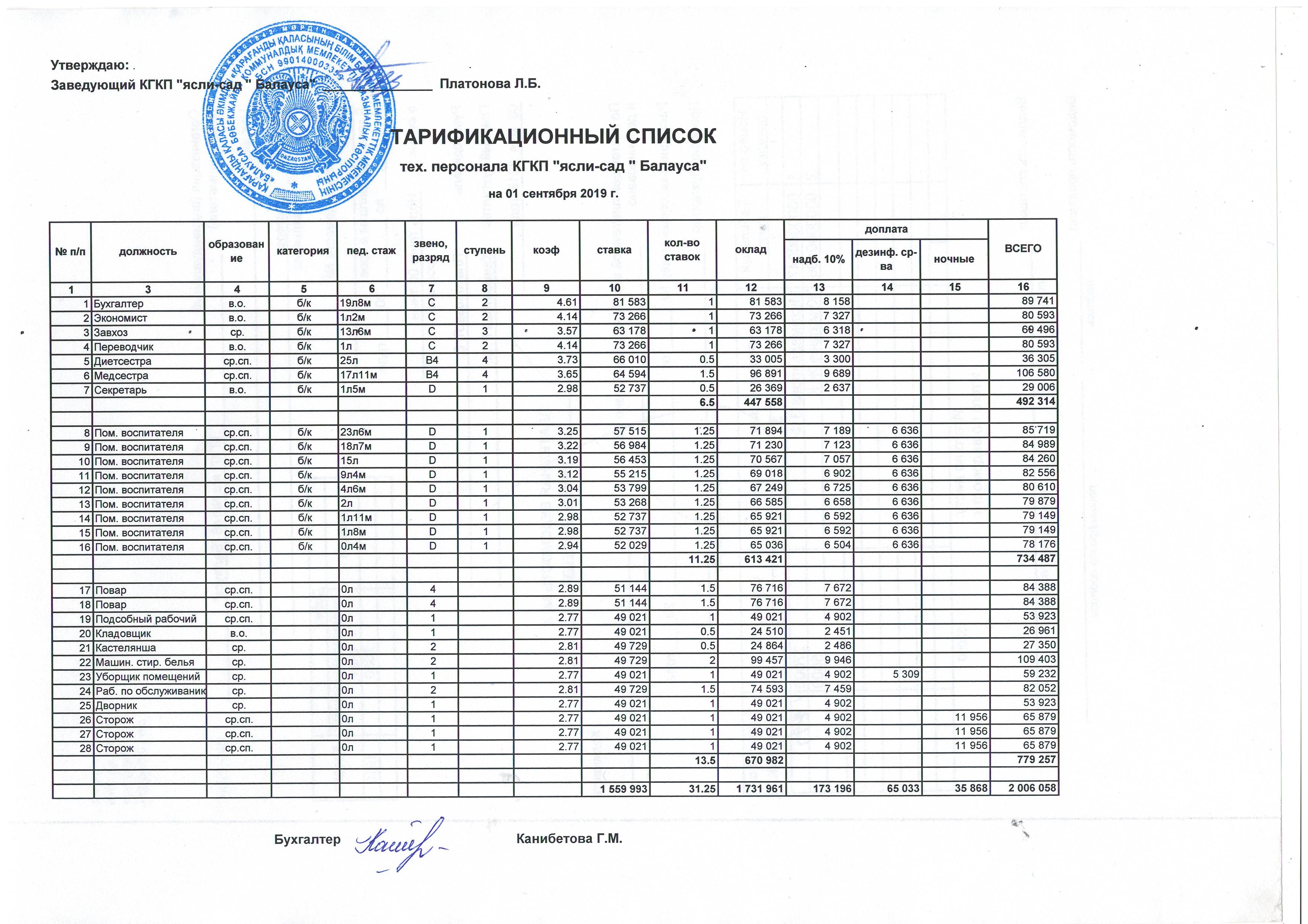 Тарификация техперсонала