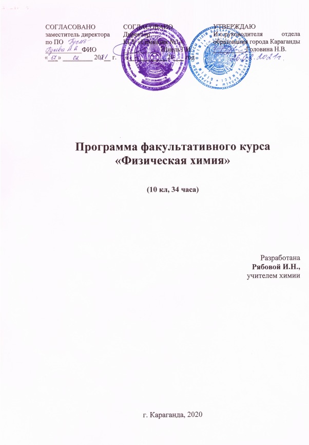 Программа факультативного курса "Физическая химия"Программа факультативного курса "Физическая химия" в 10 классе. 34 часа. Составлена учителем химии КГУ "Гимназия № 1" Рябовой И.Н. |