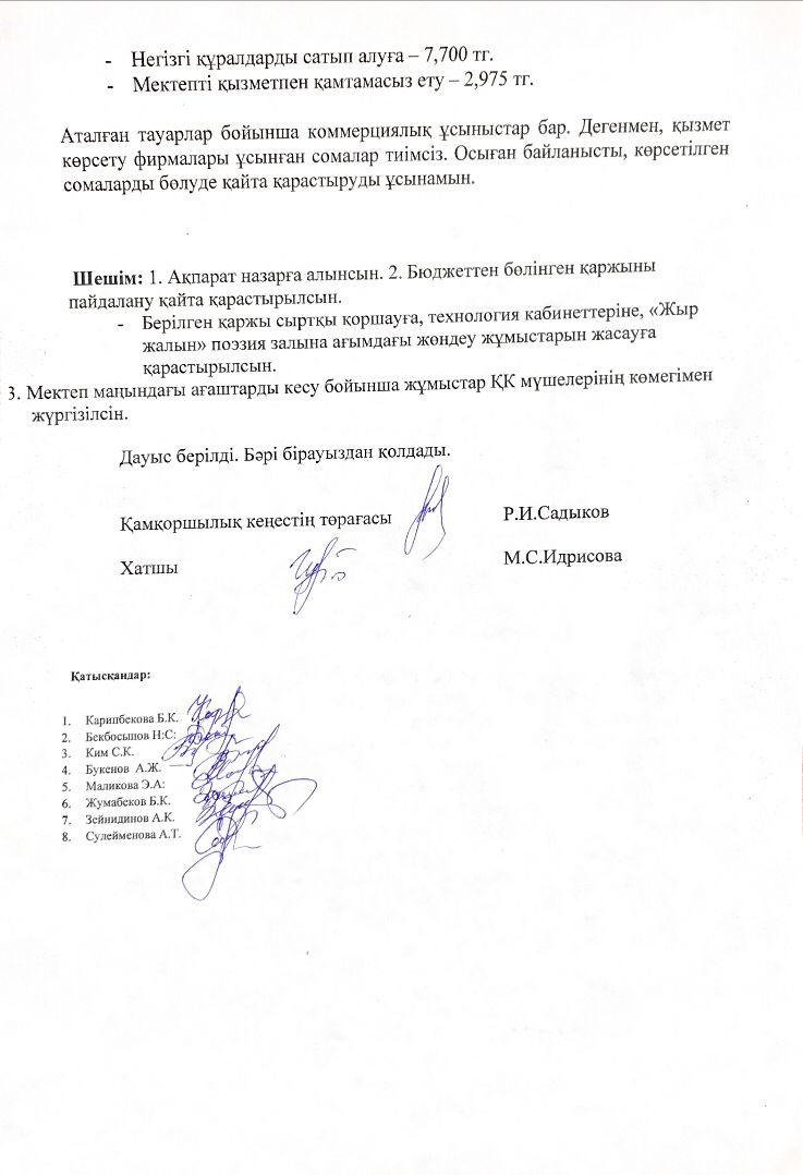 Қамқоршылық кеңесінің №3 отырысының хаттамасыҚамқоршылық кеңесінің №3 отырысының хаттамасы 31.01.2025 |