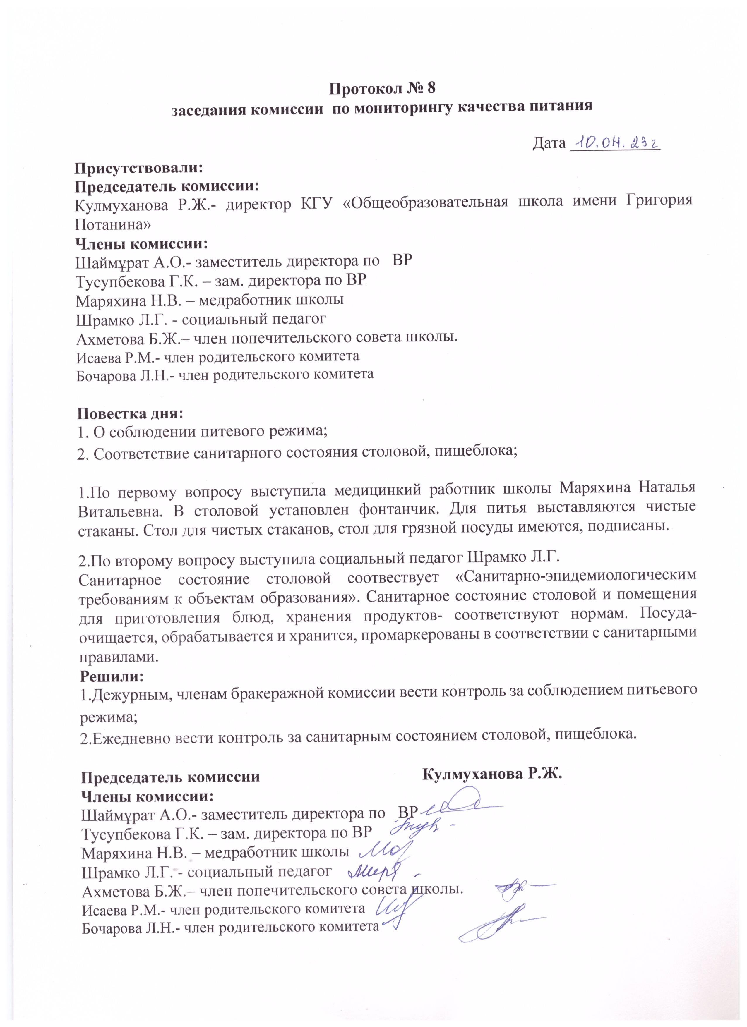 Категория: Протоколы заседаний комиссии по мониторингу за качеством питаний