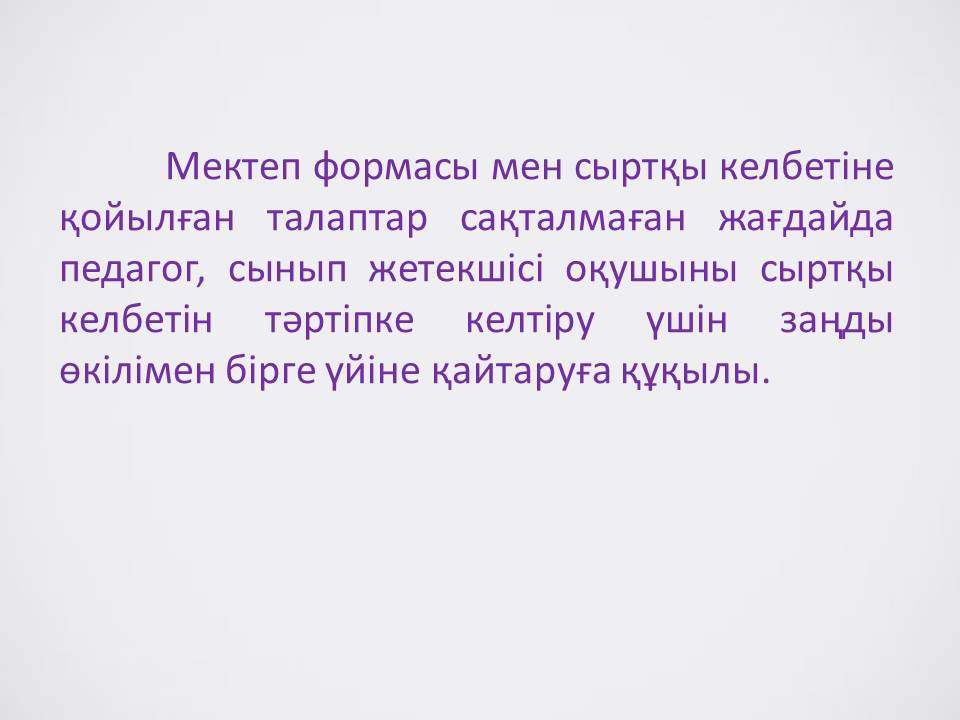 Педагогикалық әдеп қағидаларыОсы Педагогикалық әдеп қағидалары (бұдан әрі - Педагогикалық әдеп) "Білім туралы" 2007 жылғы 27 шілдедегі Қазақстан Республикасы Заңының және "Педагог мәртебесі туралы" 2019 жылғы 27 желтоқсандағы Қазақстан Республикасы Заңының ережелеріне сәйкес әзірленді, сондай-ақ Қазақстан Республикасының жалпыға бірдей танылған адамгершілік қағидаттары мен нормаларына негізделген. |