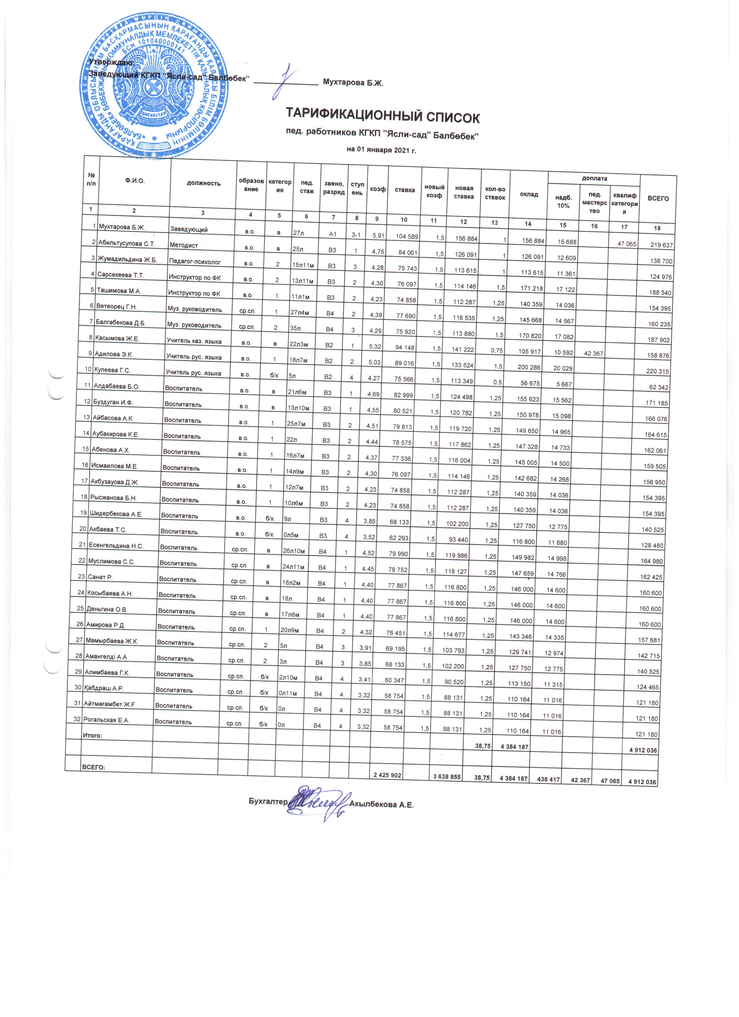 тарификация пед құрамтарификация |