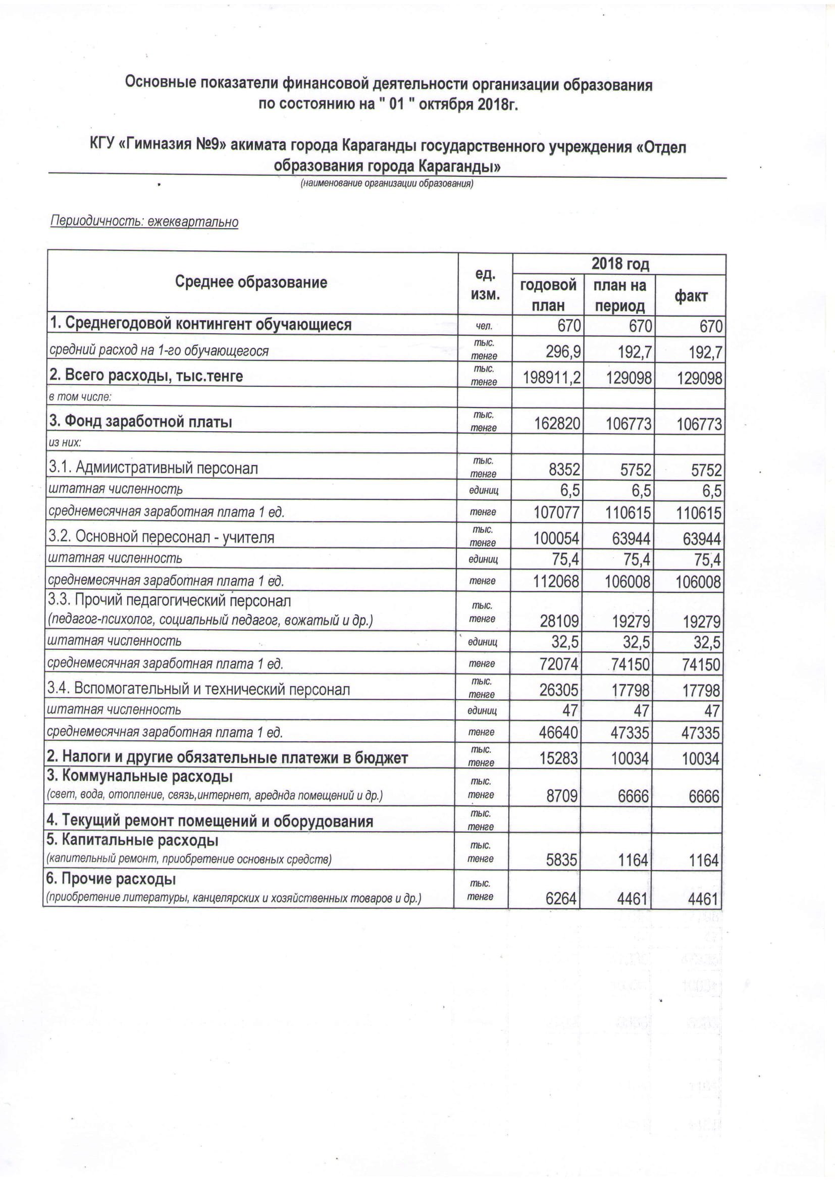 2018 жылғы қаржы жоспарыПлан финансирование |