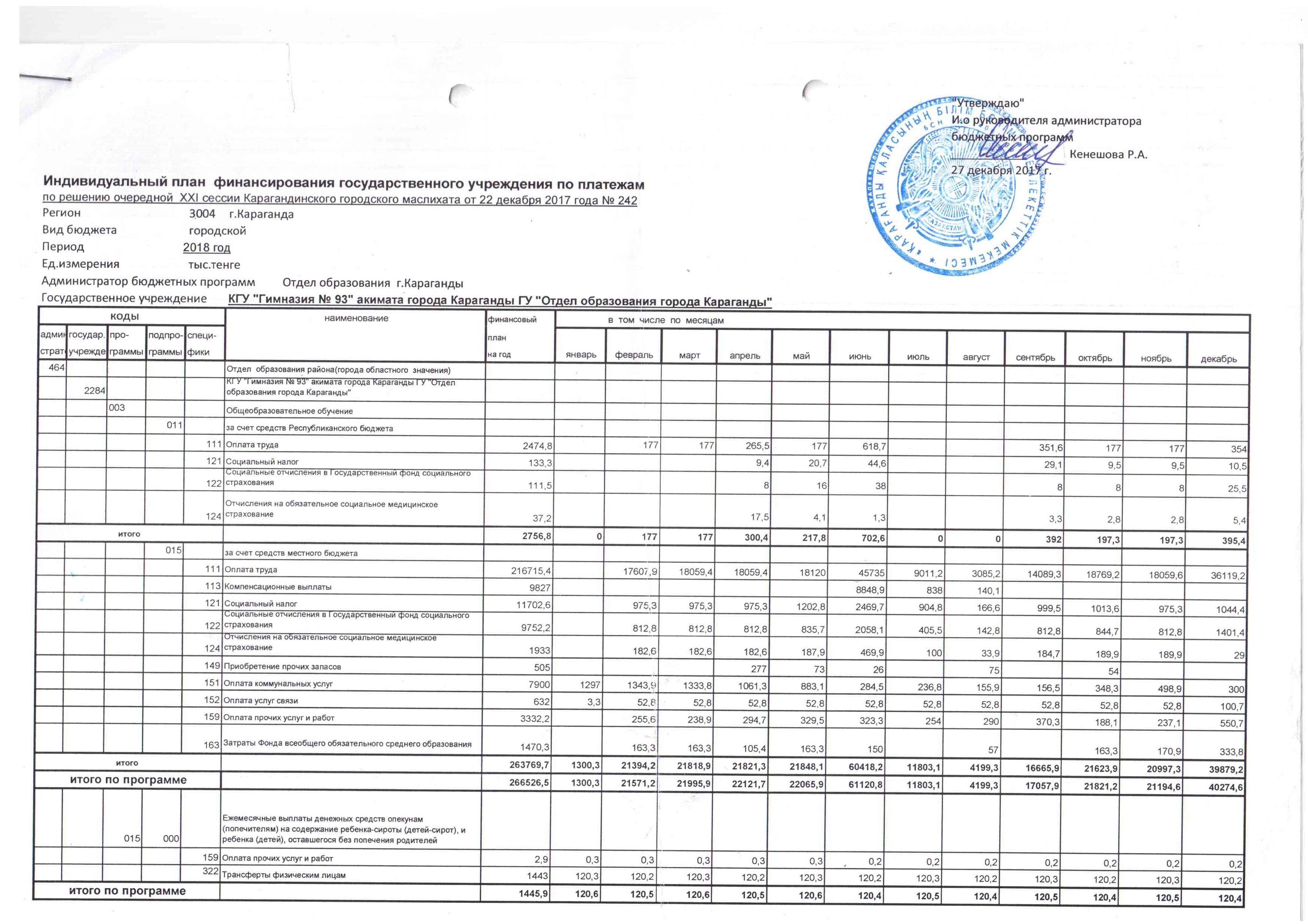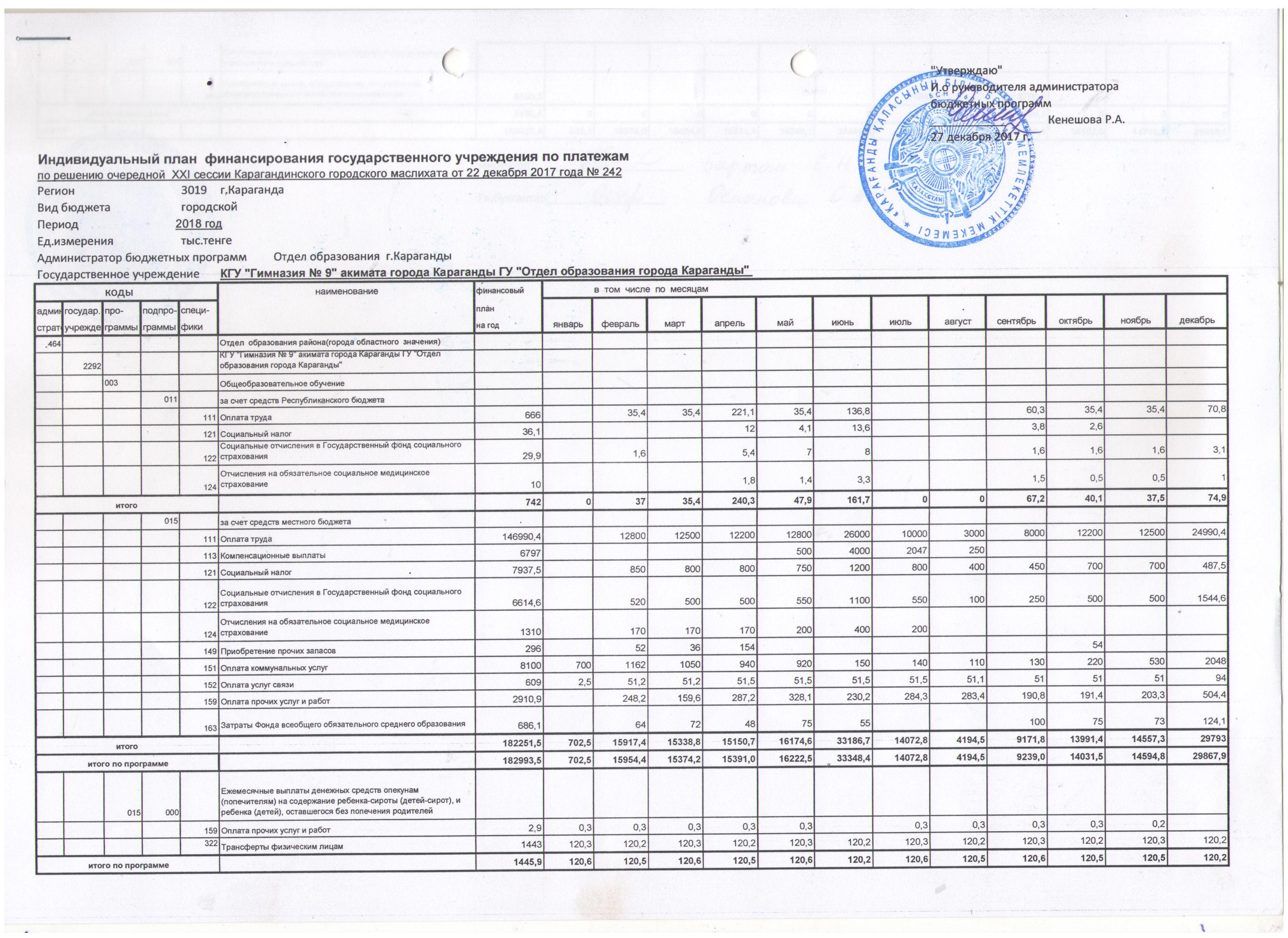 План финансированияиндивидуальный план финансирования от 27.12.2017г. |