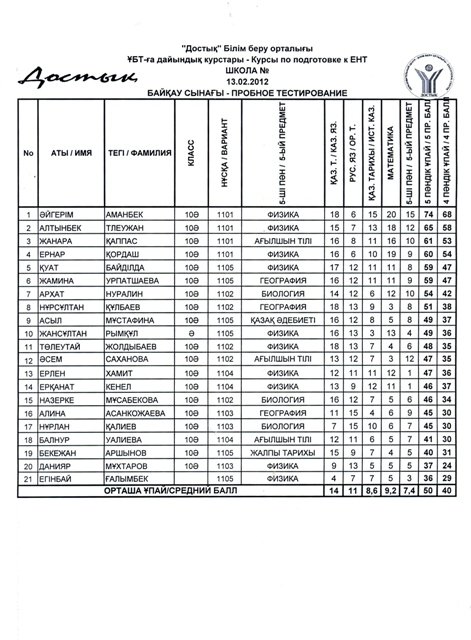 Результаты пробного ЕНТ. 10 класс. (казахское отделение)Результаты пробного ЕНТ. 10 класс. (казахское отделение) |