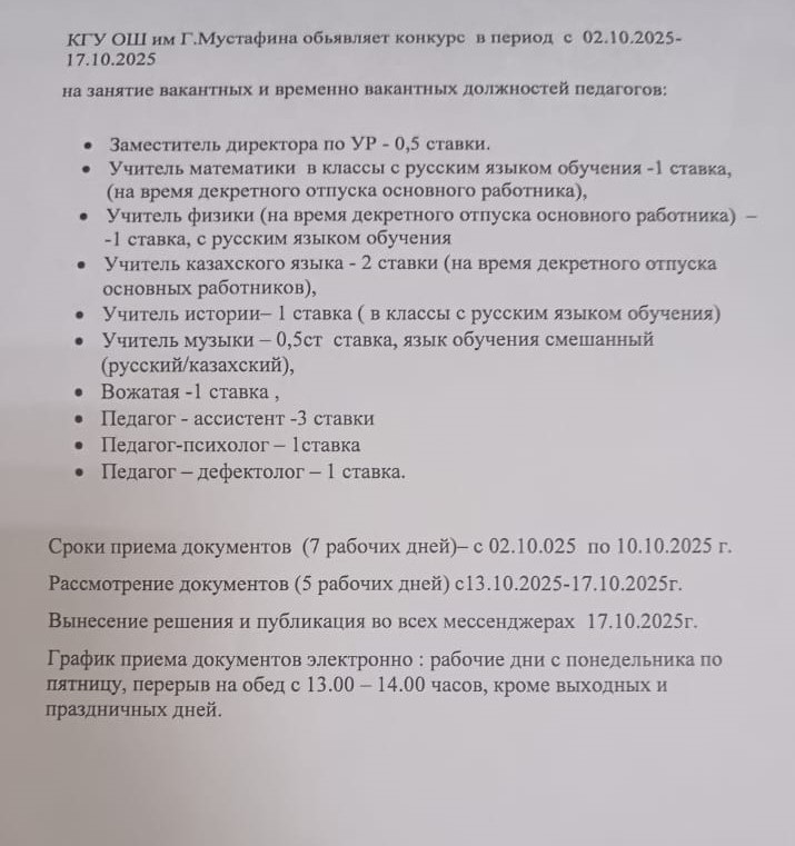 БОС ЛАУАЗЫМДАРЫНА ОРНАЛАСУҒА КОНКУРС ЖАРИЯЛАЙДЫҚОСЫМША БІЛІМ ПЕДАГОГЫ БОС ЛАУАЗЫМДАРЫНА ОРНАЛАСУҒА КОНКУРС ЖАРИЯЛАЙДЫ