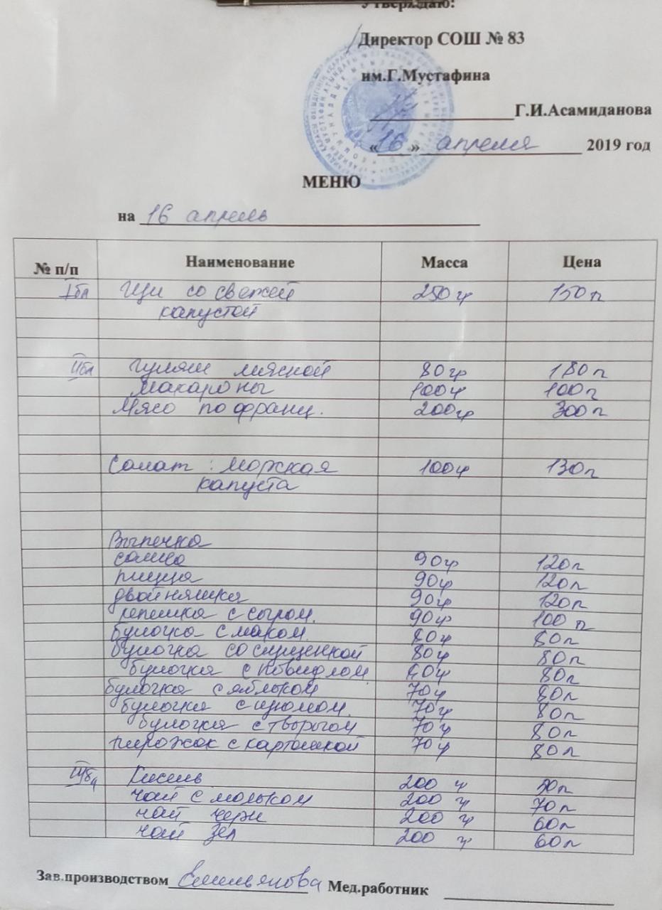 Асхана өнімдерінің сапасын қадағалау және тамақтану блогының санитарлық гигиеналық жағдайын тексеру туралы актАсхана өнімдерінің сапасын қадағалау және тамақтану блогының санитарлық гигиеналық жағдайын тексеру туралы акт 10.04.19 |