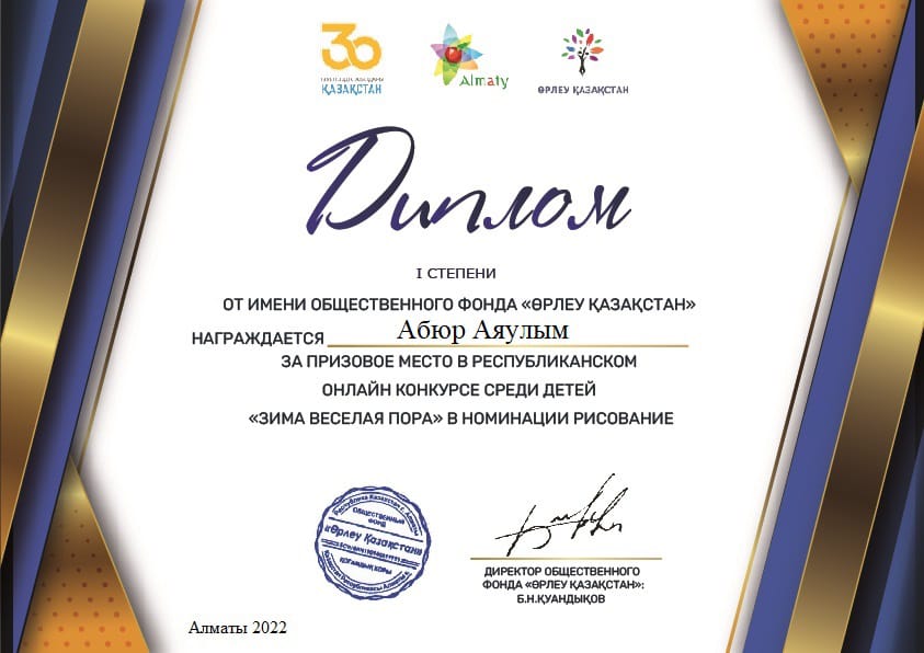 достижения наших воспитанниковПоздравляем АБЮР АЯУЛЫМ за дипломом 1 степени |