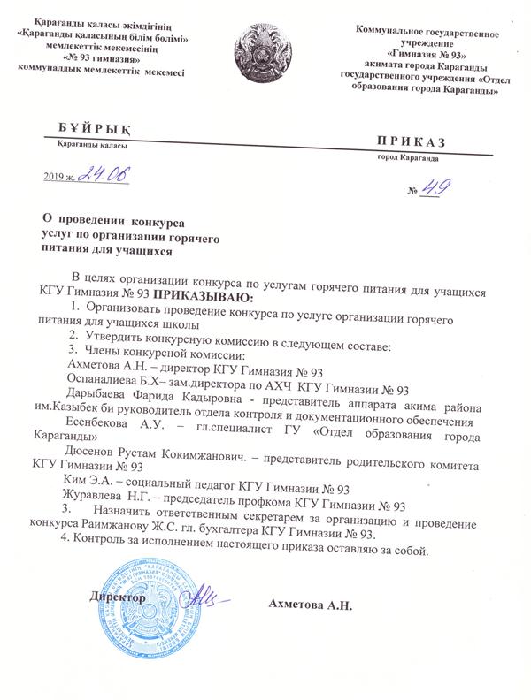 Приказ о проведении конкурса услуг по обеспечению питания для обучающихся1 |