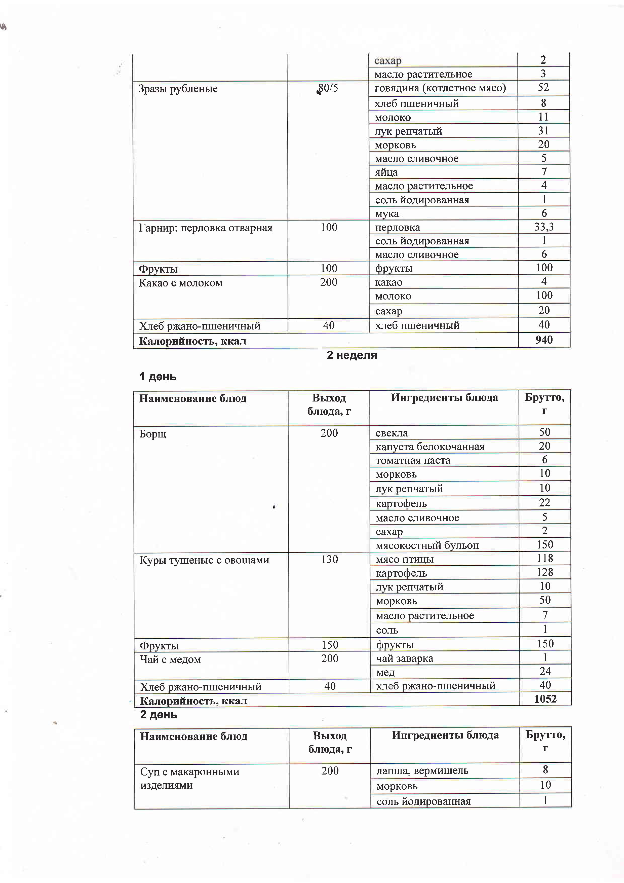 Меню столовойДвухнедельное меню |