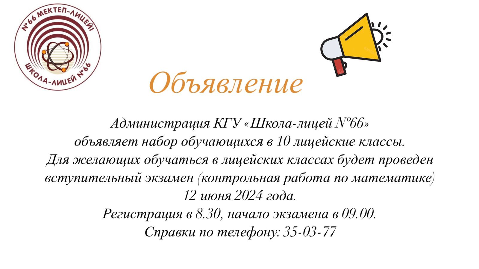 Объявление о конкурсе на замещение вакантной должности педагога гимназииКоммунальное государственное учреждение «Гимназия №1» отдела образования Караганды управления образования Карагандинской области объявляет конкурс на занятие вакантных должностей. Должность: ПЕДАГОГ НАЧАЛЬНОЙ ВОЕННОЙ И ТЕХНОЛОГИЧЕСКОЙ ПОДГОТОВКИ - 1 единица. Полная информация о проведении конкурса и приеме документов в файле. |