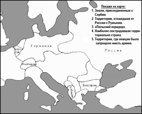 9 класс. История. Контурная карта по теме "Версальский мир". 1 вариантНеобходимо заполнить контурную карту, отвечая на вопросы на карте. |