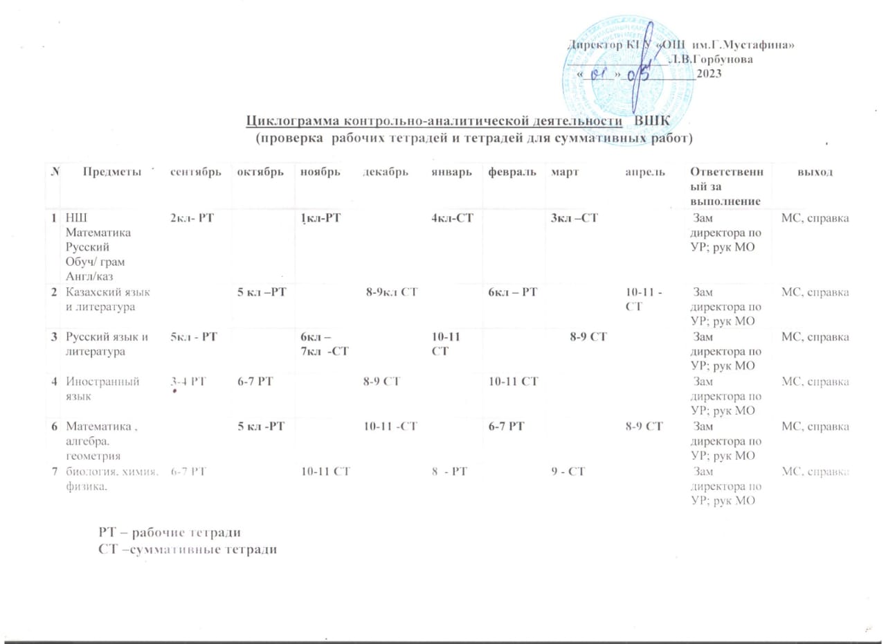 ПЛАН ВНУТРИШКОЛЬНОГО КОНТРОЛЯ2023-2024 учебный год |