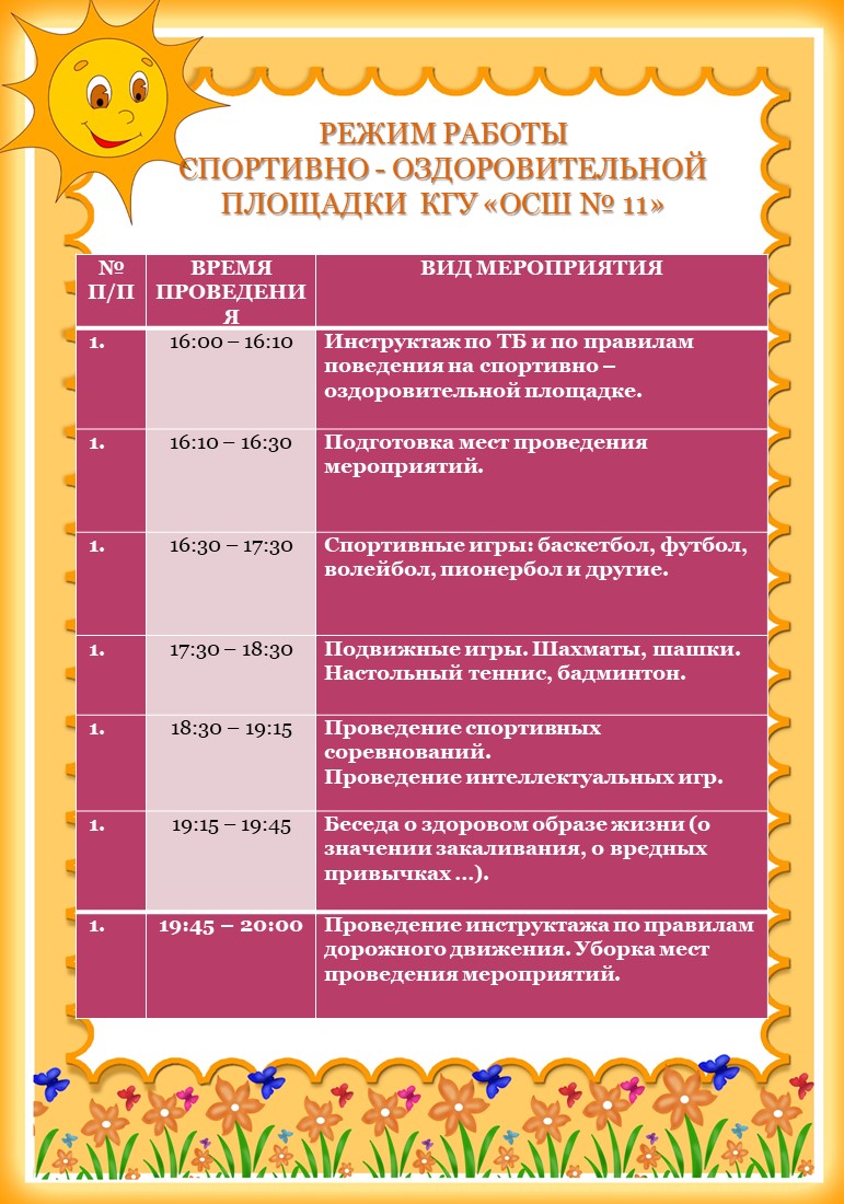 летнего пришкольного оздоровительного лагеря