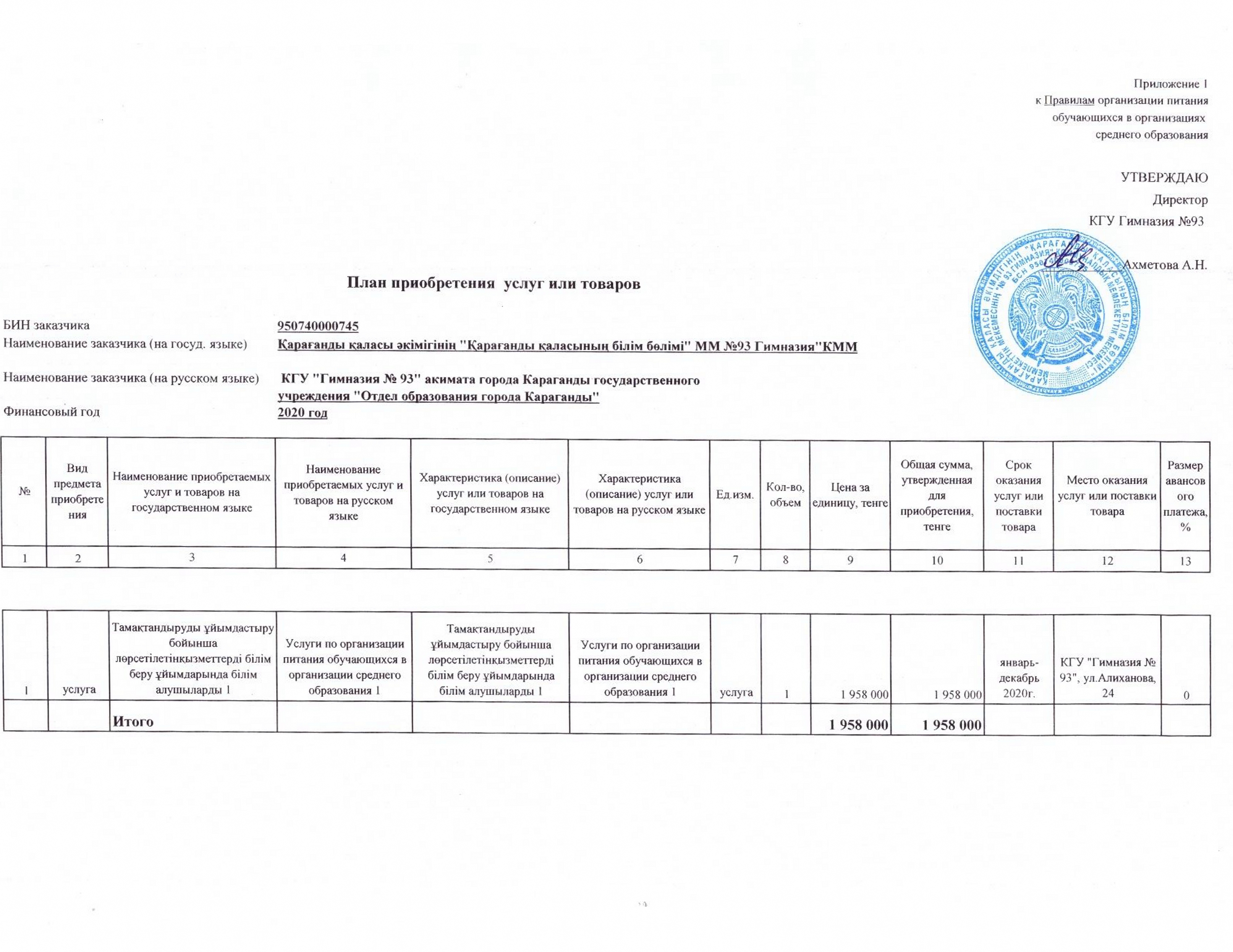 Годовой план 2020 годГодовой план на 2020 год по продуктам питания |